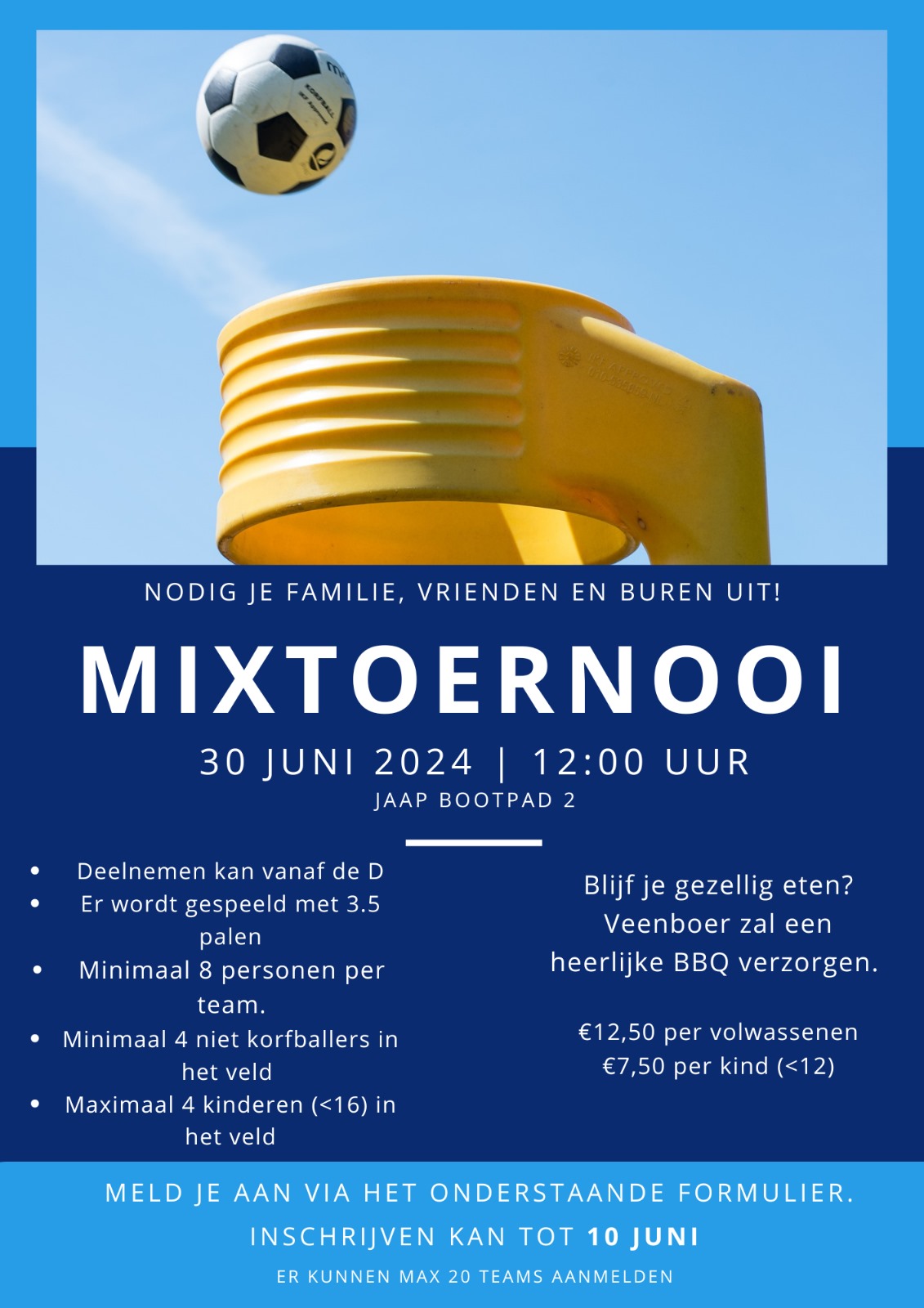 De inschrijvingen voor het mixtoernooi zijn geopend!🎉 Dus nodig je familie, vrienden, buren, collega’s en andere kennissen uit om gezellig mee te doen.